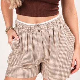 FINAL SALE – Daydream Delight Beige Gingham Boxer Shorts