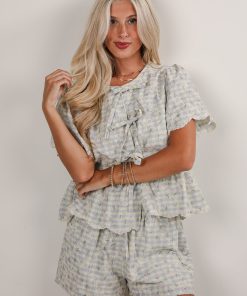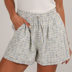 FINAL SALE – Next Thing You Know Light Blue Gingham Floral Embroidered Shorts
