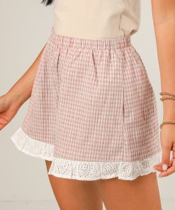 For a timeless aesthetic that pairs effortlessly with a summer’s day, we suggest styling the Show You The Way Mauve Gingham Shorts! Featuring a classic mauve and white gingham print, these lightweight shorts are designed with a comfortable elastic waistband for the perfect fit and finished with delicate white eyelet trim for a feminine, charming detail. Perfect for pairing with a tucked-in tank or the matching top for a coordinated look, these shorts are your go-to for sunny days and weekend getaways! Lightweight Woven Knit Fabrication Gingham Print Eyelet Trim High-Waisted Elastic Waistband Relaxed Fit Side Pockets Self: 80% Polyester, 20% Cotton Contrast: 100% Polyester Hand Wash Cold, Lay Flat to Dry Models are 5’4″ and are wearing a Small.Garment Measurements in Inches:Small | Waist 26” (Stretches up to 34″) | Hips 40” | Length 14” | Inseam 3”Medium | Waist 28” (Stretches up to 36) | Hips 42” | Length 14.5” | Inseam 3”Large | Waist 30” (Stretches up to 38″) | Hips 44” | Length 15” | Inseam 3”