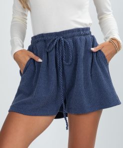 Effortlessly casual and comfy, the Take My Time Navy Corded Shorts are a wardrobe essential! Crafted from soft, corded knit fabric, these shorts feature a relaxed fit and elastic waistband for all-day comfort. The deep navy hue makes them versatile for pairing with tees, tanks, or oversized sweaters for a laid-back, stylish look! Soft + Stretchy Corded Knit Fabrication High-Waisted Elastic Waistband with Functional Drawstring Tie Relaxed Fit Side Pockets 76% Polyester, 21% Rayon, 3% Spandex Hand Wash Cold, Hang or Line Dry Model is 5’4″ and wearing a Small.Garment Measurements in Inches:Small | Waist 26” (Stretches up to 30″) | Hips 44” | Length 15” | Inseam 2.5”Medium | Waist 28” (Stretches up to 32″) | Hips 46” | Length 15.5” | Inseam 2.5”Large | Waist 30” (Stretches up to 34″) | Hips 48” | Length 16” | Inseam 3”